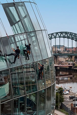 Over the years, including an episode of Blue Peter for BBC TV when Joel Defries was a presenter in 2007. BBC Blue Peter researchers and the long-time producer Alex Leger got in touch with us and asked if we could help them do an episode when Joel learns to clean windows and abseil at our training centre in Cramlington in preparation for the final cleaning the external windows as a Rope Access Window Cleaning Technician.