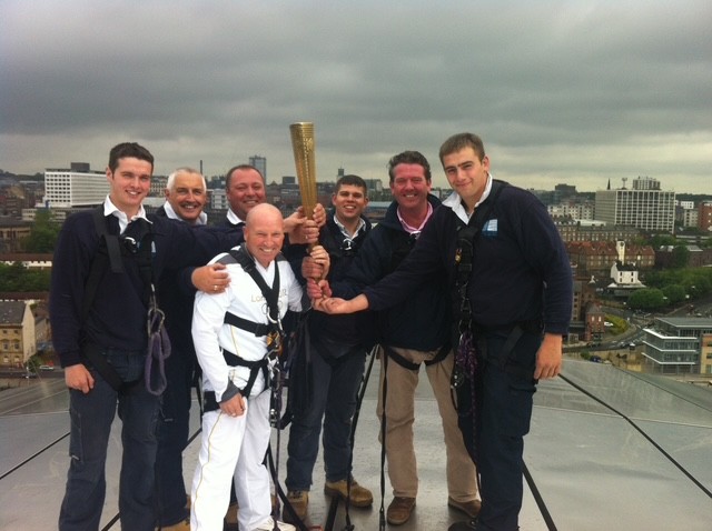 Olympic Torch relay bearers 2012 – We were contacted in the utmost of secrecy in Early 2011 with an initial expansion of interest from the 2012 Olympic Planning Committee to see if it would be possible for us to relay the torch down the North Elevation of the Glasshouse via Rope Access.