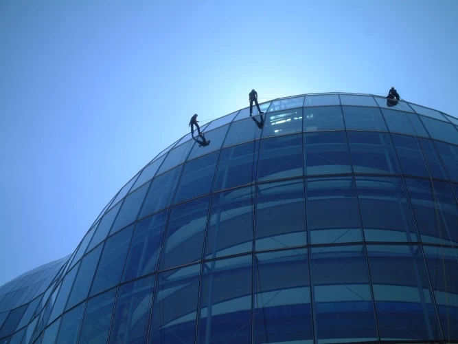 The shape of the roof at the time posed a particular problem however with carful planning and consultation we devised a work positioning system which would give our Rope Access Window Cleaning Technicians and our Rope Access Maintenance Technicians total access to every square inch of the building.