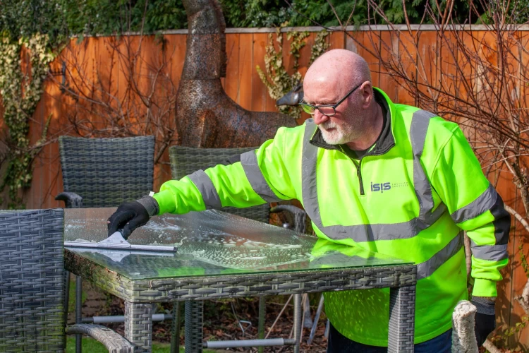 Further works included Patio paving cleaning, rotary jet washing of resin bound driveway and paths. Patio furniture needed freshening up and received a thorough jet wash down including upholstery, blasting away moss, guano and the remnants of last year BBQ parties, all fresh and ready for the summer alfresco dining and drinks season…..bet you can’t wait!?