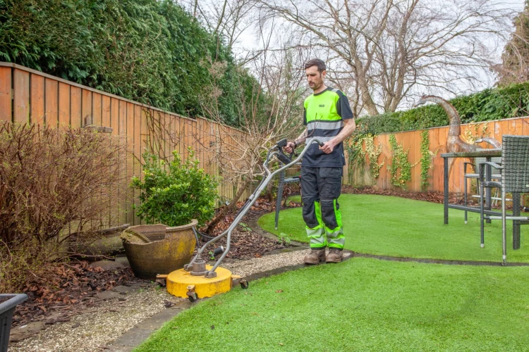 An upturn in enquiries from our much loved domestic clients has also been keeping us busy following a great little video put together for us by our great friends and long-term website design and marketing partners at Lazy Grace (additional feature to come - watch this space). A day of onsite filming took place while our ops were carrying a range of Spring cleaning works for a client in Ponteland. Our scope of works was pretty extensive involving, Soft Washing of white rendered walls and outside pizza oven which sit under a pergola. The client had artificial turf installed 7 years ago, unable to maintain a real lawn due to travel commitments at the time. The client also has a dog which generally uses the turf as a toilet. Surrounded by mature shrubs and in the shade of a beech tree there is a degree of moss and weed growth in artificial turf. We are able to treat and clean artificial turf by pre treating with a specialist pre-treatment cleanser which disinfects the surface through its pile to the base below. We can also supply scented cleanser which neutralises any unpleasant odours which can develop depending on how the turf has been laid. Twenty minutes after application we agitate the surface by hand using stiff yard brooms and finally rinse with our power wash /jet wash.